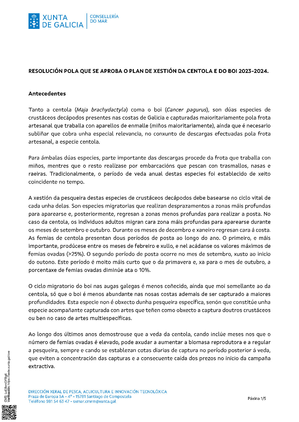 APROBADO O PLAN DE XESTIÓN DE CENTOLA E BOI 2023-2024