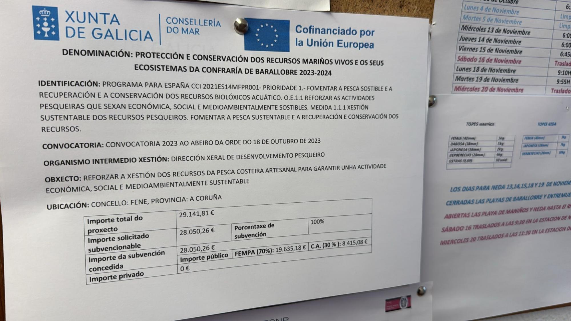 actividade económica, social e medioambientalmente sostible, sendo financiado un 70% polo FEMPA (Unión Europea) e o 30% restante (Xunta de Galicia) por un importe total de 28.050,26 euros,.