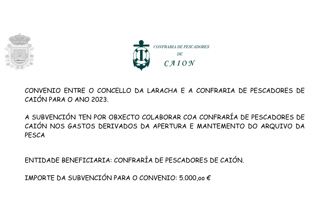 Convenio entre el ayuntamiento de A Laracha y la Cofradía de Pescadore de Caión para el año 2023
