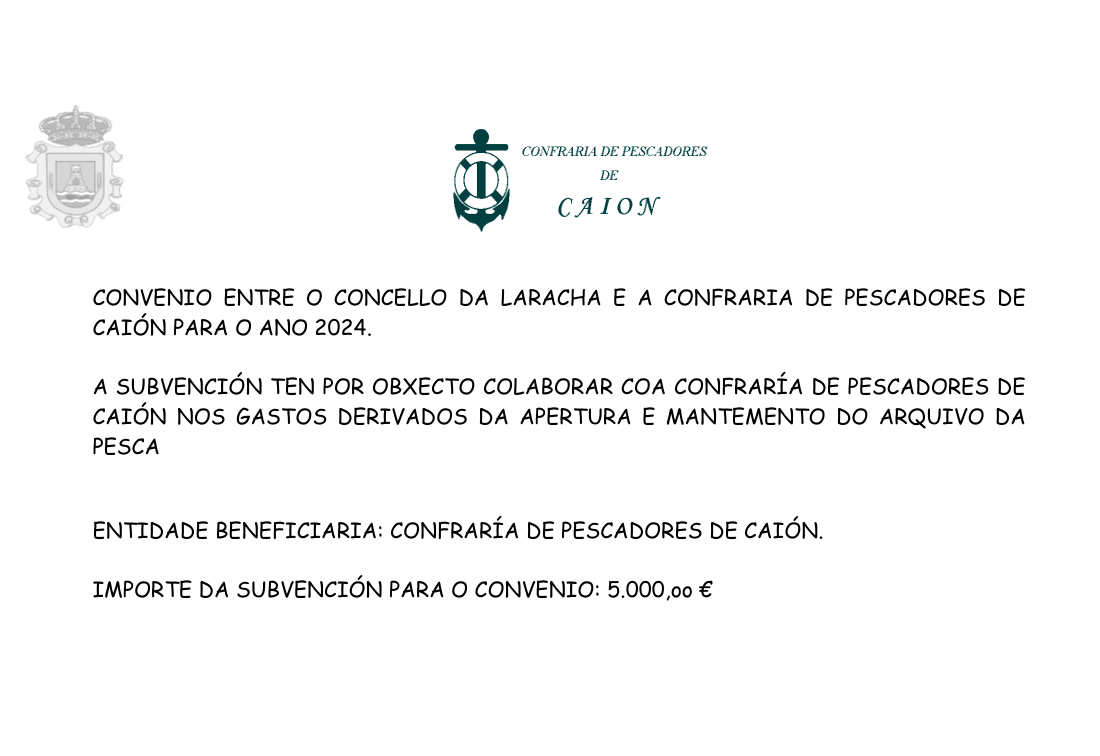 Convenio entre o concello de A Laracha e a Confraría de Pescadores de Caión para o ano 2024