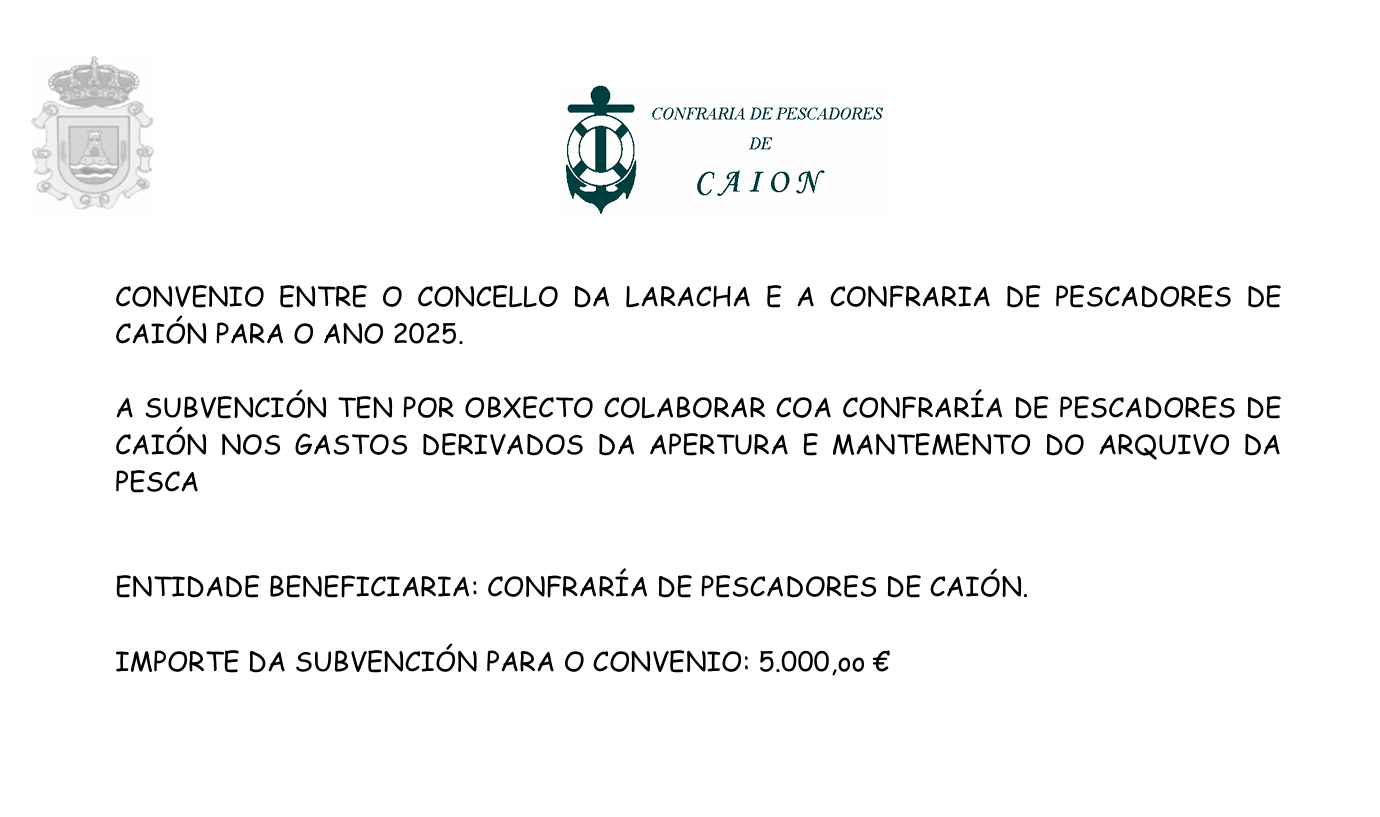 Convenio entre o concello de A Laracha e a Confraría de Pescadores de Caión para o ano 2025
