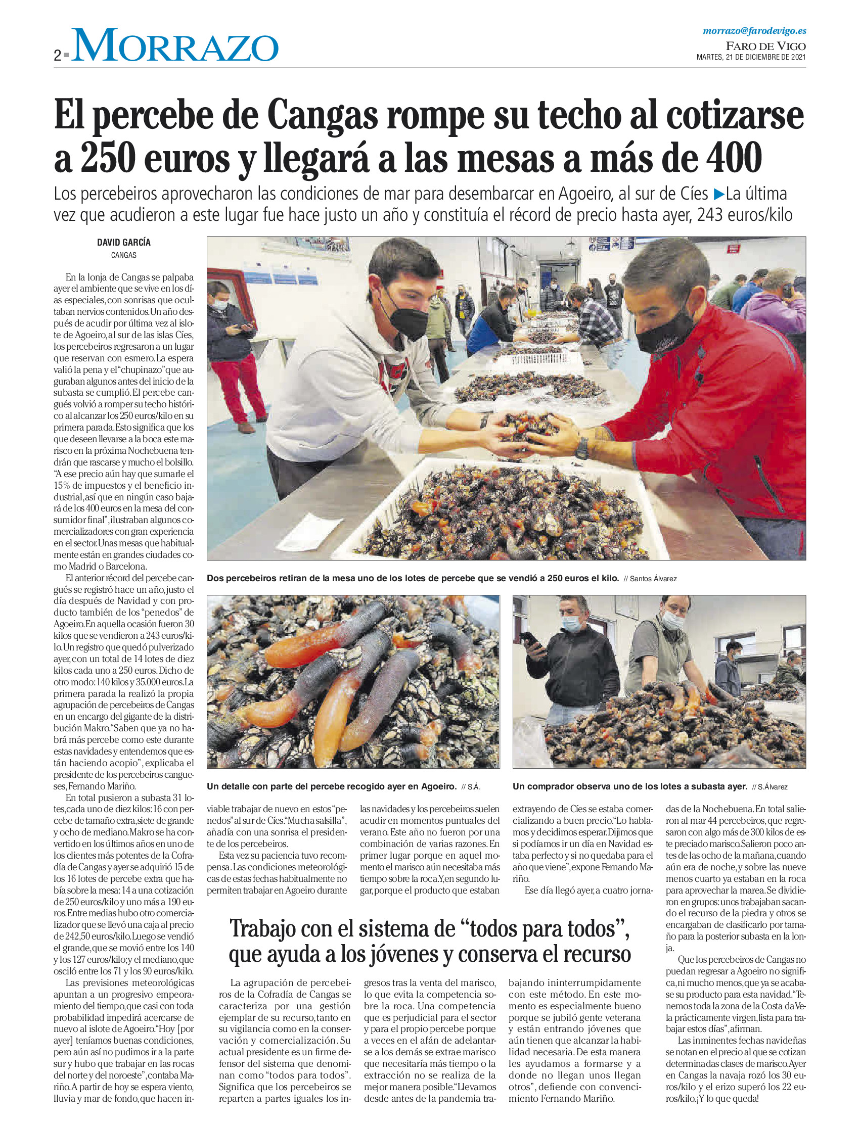 O PERCEBE DE CANGAS ROMPE O SEU TEITO AO COTIZARSE A 250 EUROS
