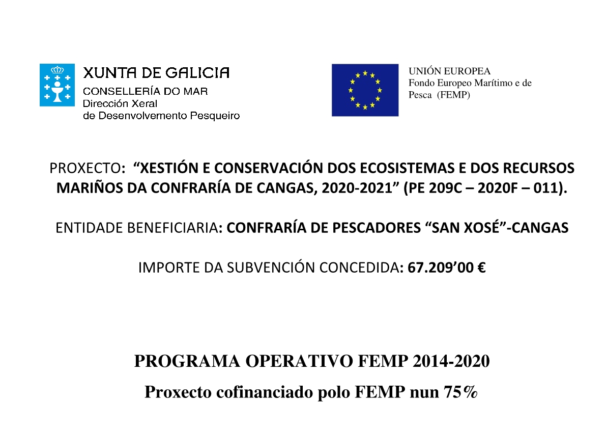 PROXECTO: “XESTIÓN E CONSERVACIÓN DOS ECOSISTEMAS E DOS RECURSOS MARIÑOS DA CONFRARÍA DE CANGAS, 2020-2021” (PE 209C – 2020F – 011).