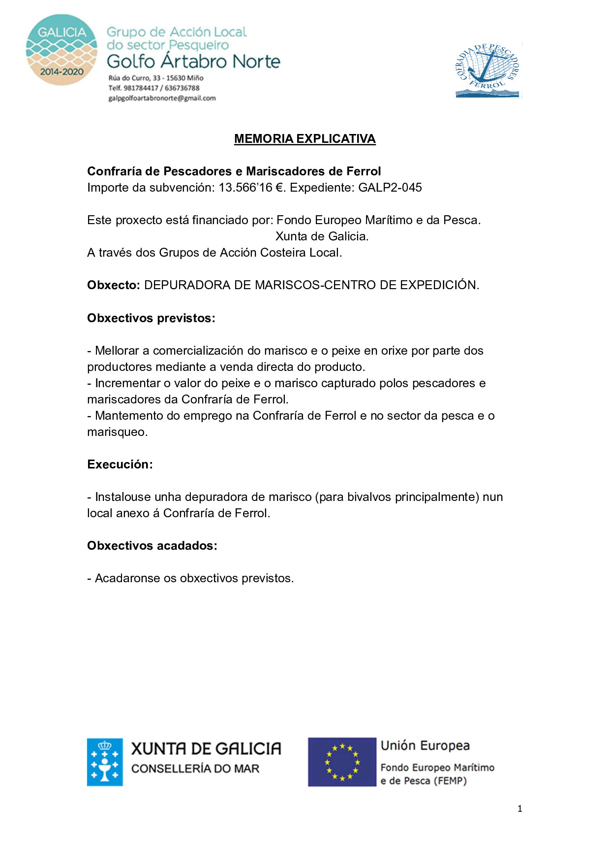 INSTALACIÓN DE DEPURADORA DE MARISCOS-CENTRO DE EXPEDICIÓN(GALP2-045)