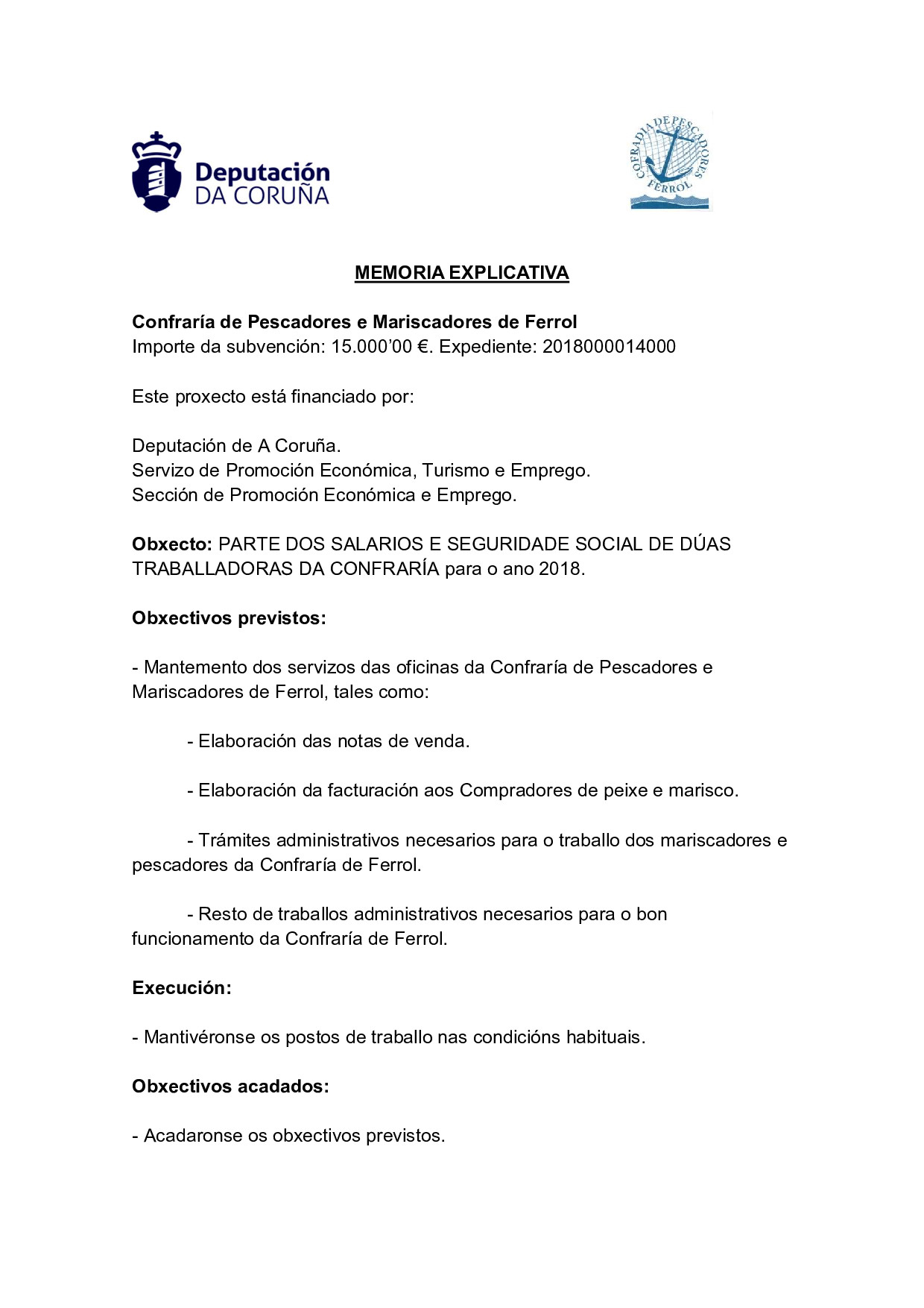Parte dos salarios de dúas traballadoras desta confraría