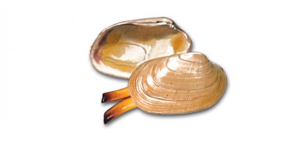 El color de este molusco es normalmente gris pálido o crema, con bandas tenues de una tonalidad más intensa y unas líneas que se dibujan en la concha en paralelo a su borde. Los sifones de la almeja babosa están unidos en toda su longitud, siendo precisamente esta característica la que nos permite diferenciarla de las otras clases de almejas.