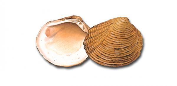 Concha fina y fuerte, y su apariencia exterior puede variar entre un color cremoso hasta un marrón oscuro en la que a pesar de ser prácticamente lisa, podemos diferenciar las líneas concéntricas ya que tienen un tono rosado En la mayoría de las ocasiones puede alcanzar cerca de 110 mm de diámetro y pasar de 200 gramos de peso atlánticas.
