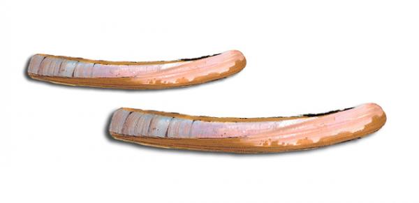Tienen una superficie brillante que parece barnizada. Las valvas son alargadas, con una concha arqueada muy característica (en forma de navaja) que las diferencia del longueirón, con el que, no obstante, comparten una coloración similar.