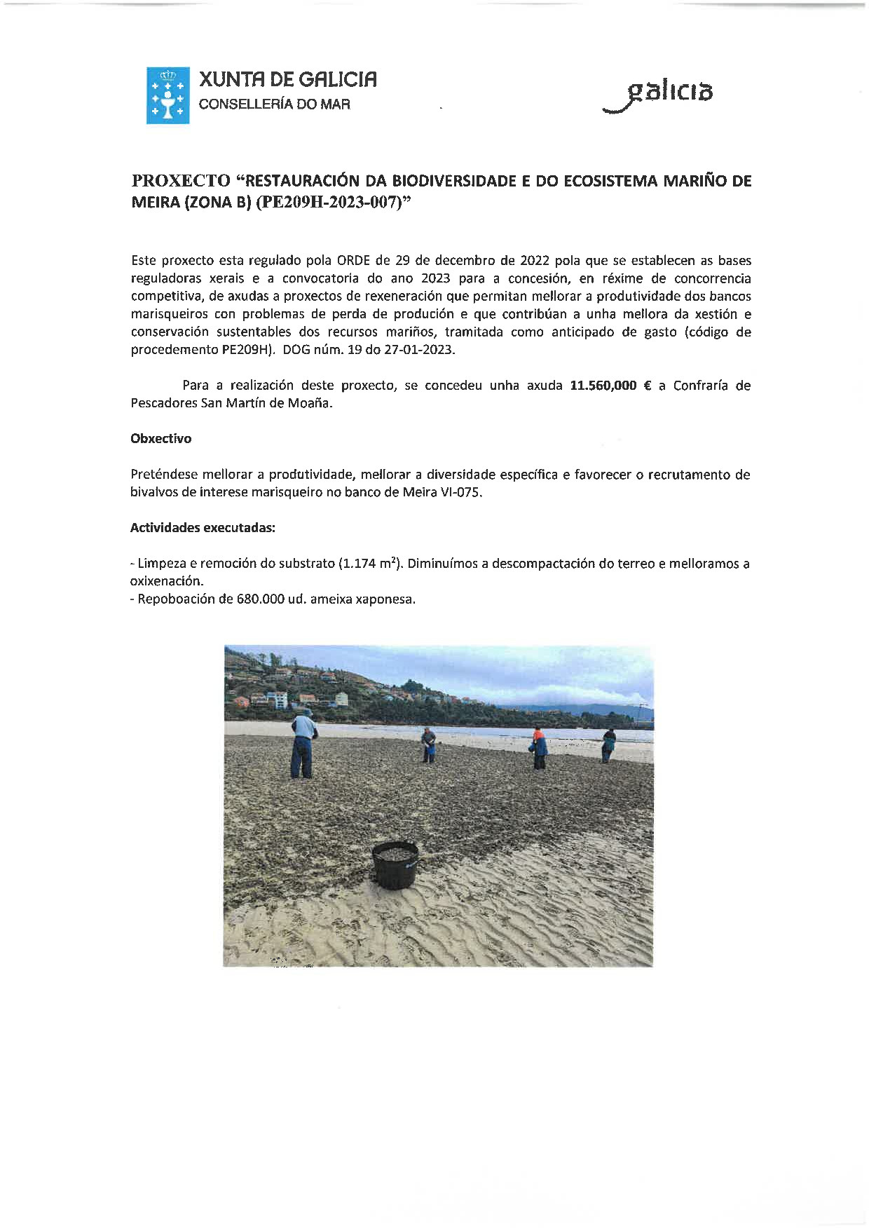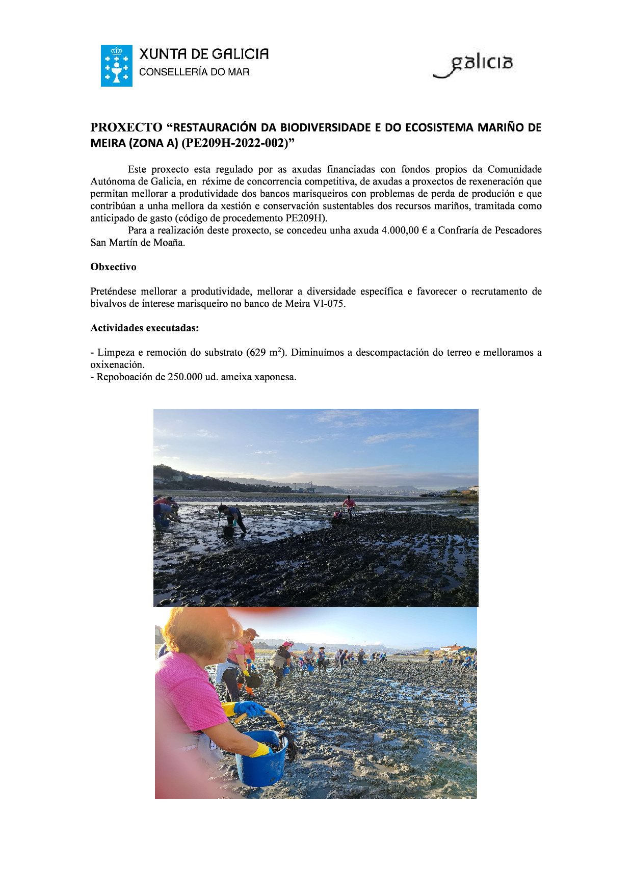 PROXECTO “RESTAURACIÓN DA BIODIVERSIDADE E DO ECOSISTEMA MARIÑO DE MEIRA (ZONA A) (PE209H-2022-002)”