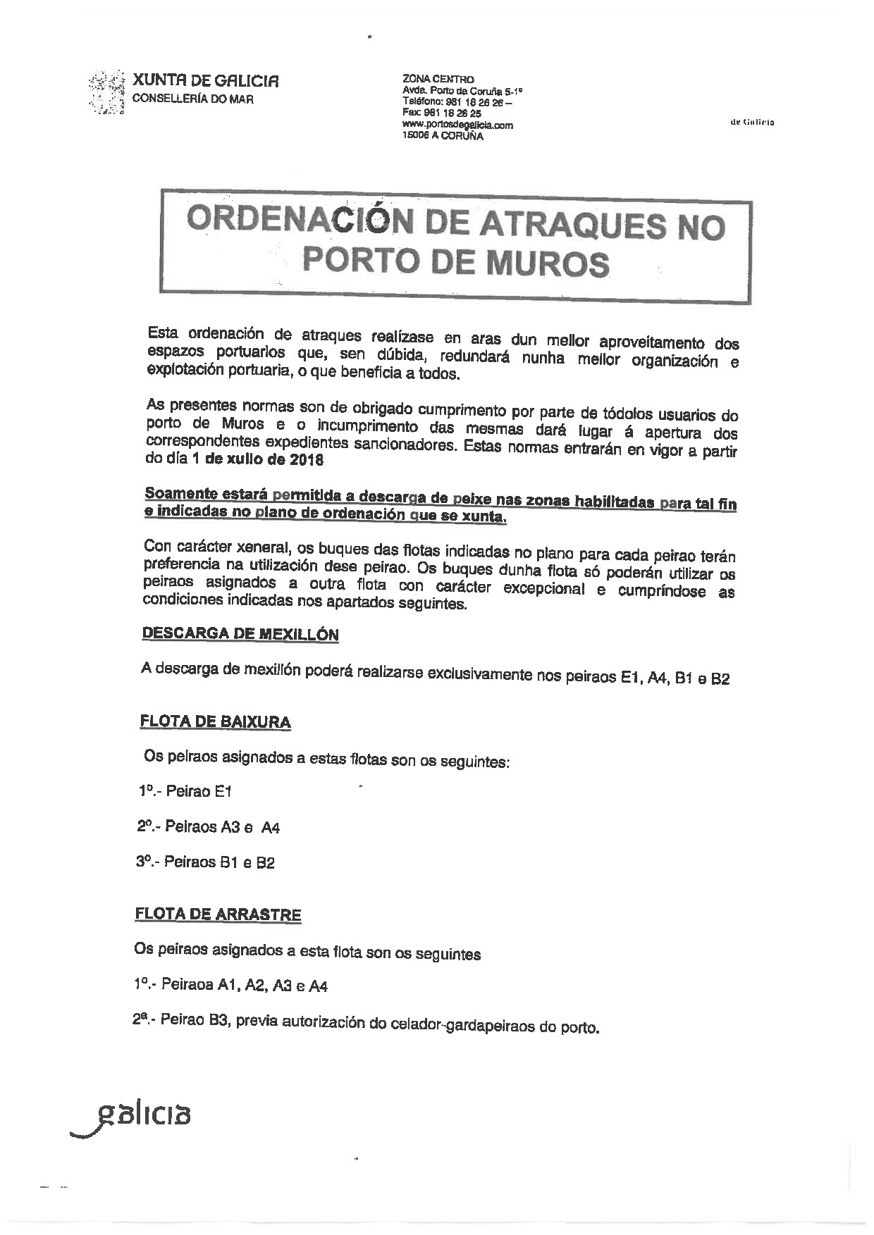 A descarga de mexillon podera reaiizarse exciusivamente nos peiraos E1, A4, B1 e B2 FLOTA DE BAIXURA