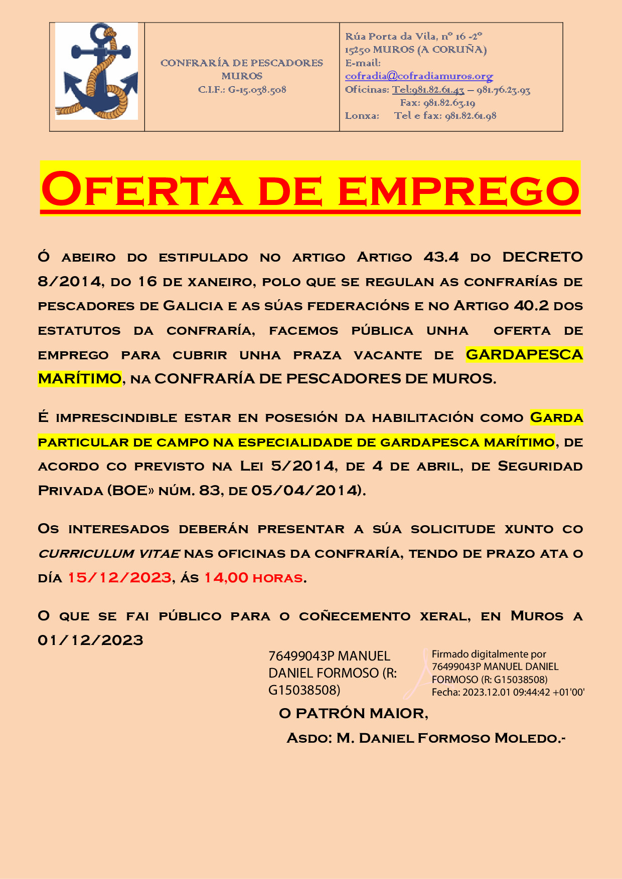 2. Esta relación publicarase o día 5 de febreiro de 2024 no seguinte enderezo https://mar.xunta.gal/gl/de-interese/novidades
