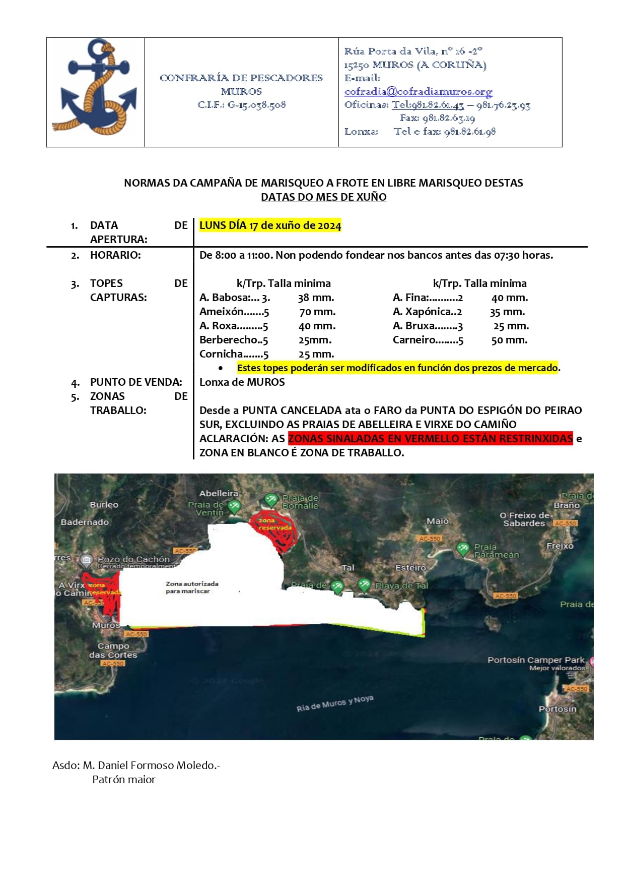NA CONFRARÍA DE PESCADORES DE MUROS CONVOCASE UN PROCESO SELECTIVO PARA O ACCESO AO PERMISO DE EXPLOTACIÓN, MODALIDADE DE MARISQUEO XERAL A PÉ:
