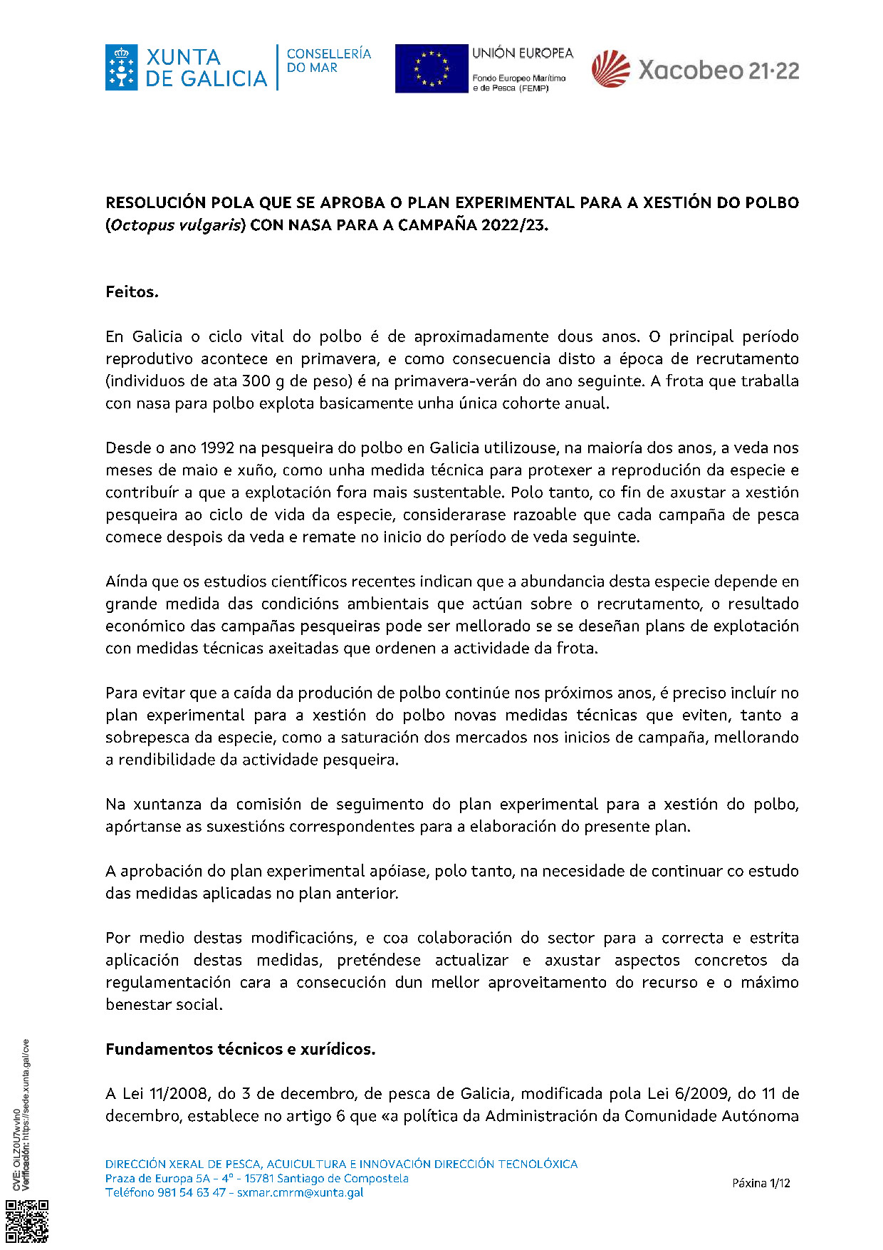 PLAN EXPERIMENTAL PARA A XESTIÓN DO POLBO 2022-2023