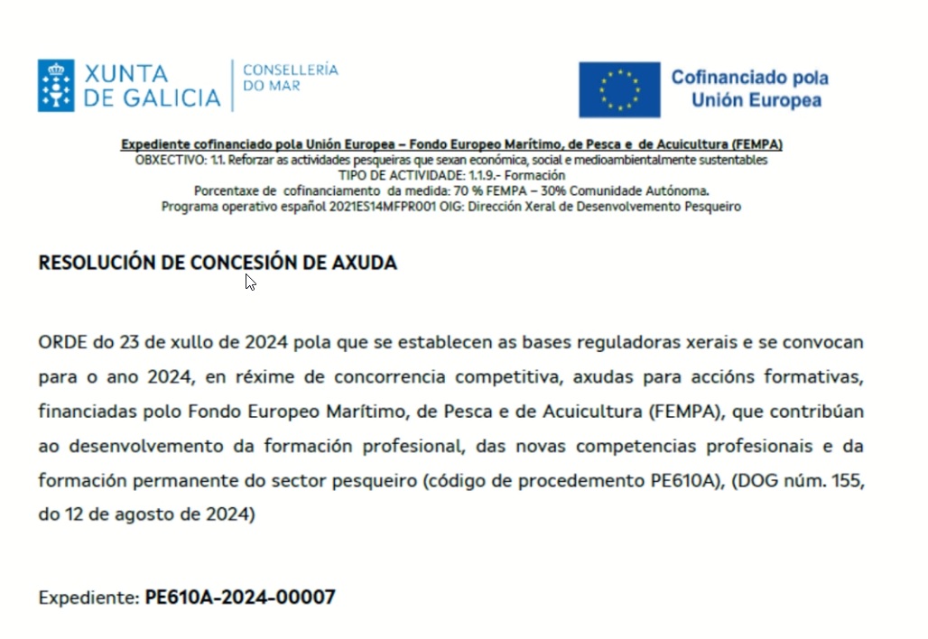 - O curso é totalmente gratuíto, soamente é imprescindible acreditar vinculación co sector marítimo mediante a presentación do certificado de Mariñeiro Pescador ou o xustificante de ter presentado a solicitude de expedición da titulación.
