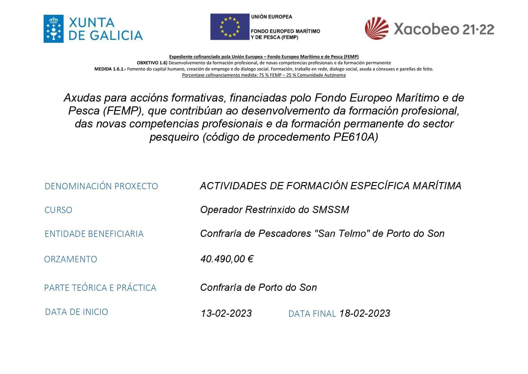 ACTIVIDADE FORMATIVA: CURSO DE OPERADOR RESTRINXIDO DO SMSSM