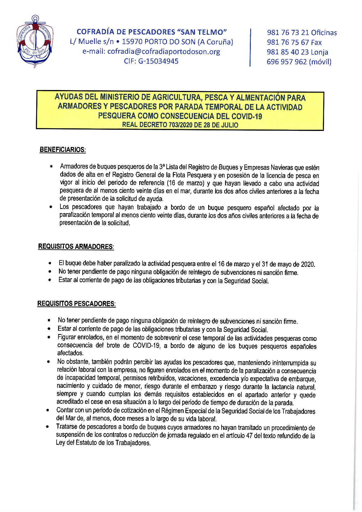 BANDO AYUDAS ARMADORES Y PESCADORES MAPA POR PARADA TEMPORAL COMO CONSECUENCIA DEL COVID-19