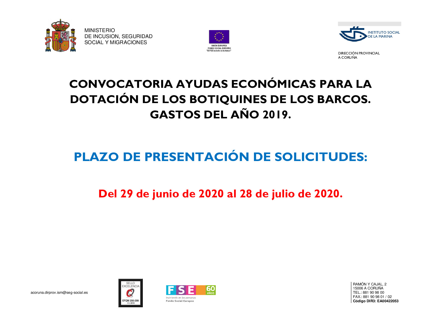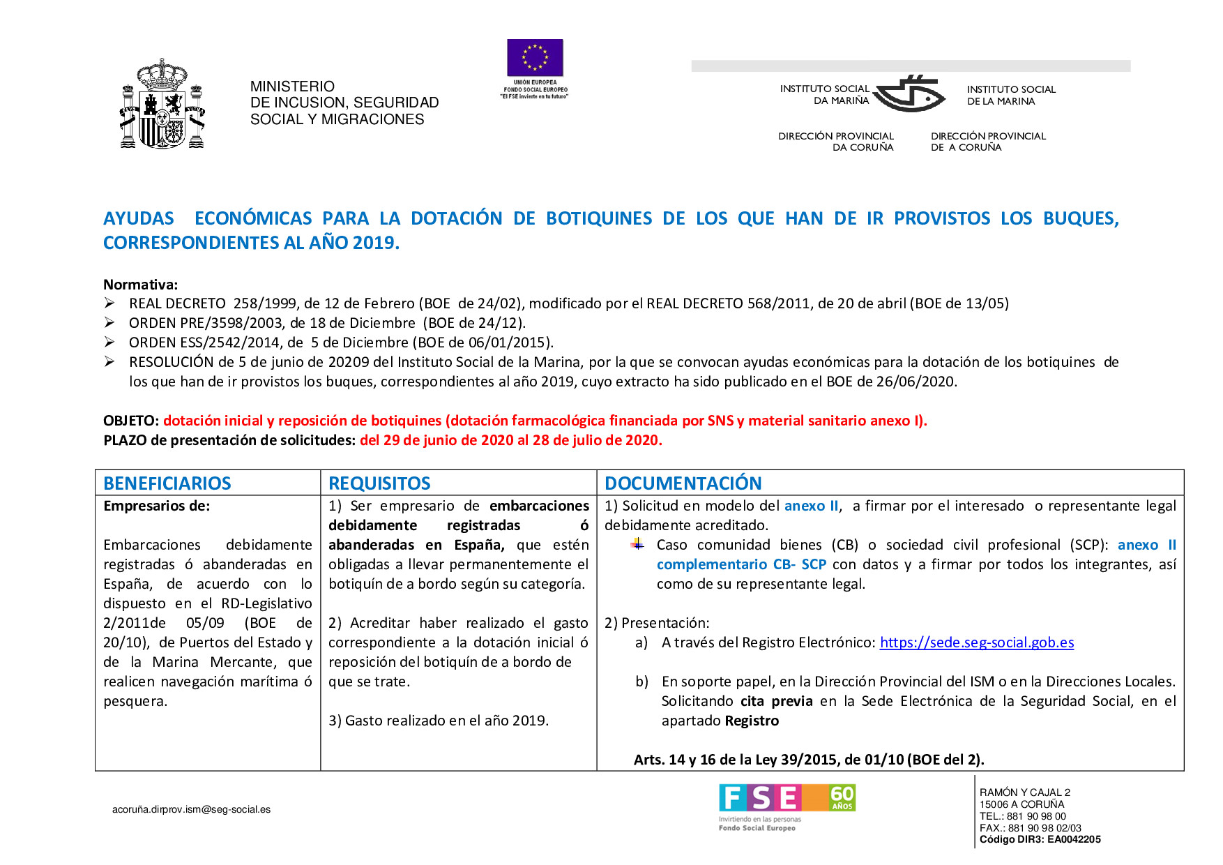 AYUDAS ECONÓMICAS PARA LA DOTACIÓN DE BOTIQUINES DE LOS QUE HAN DE IR PROVISTOS LOS BUQUES, CORRESPONDIENTES AL AÑO 2019