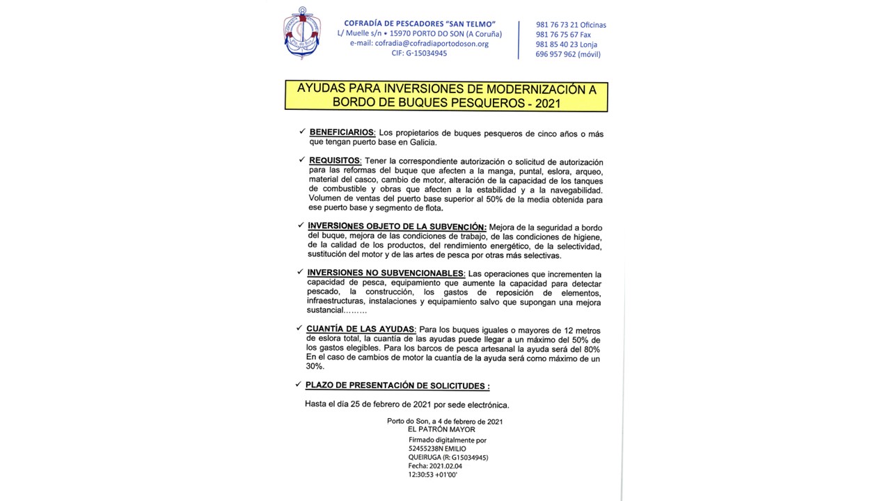 BANDO AYUDAS PARA INVERSIONES DE MODERNIZACIÓN A BORDO DE BUQUES PESQUEROS-2021