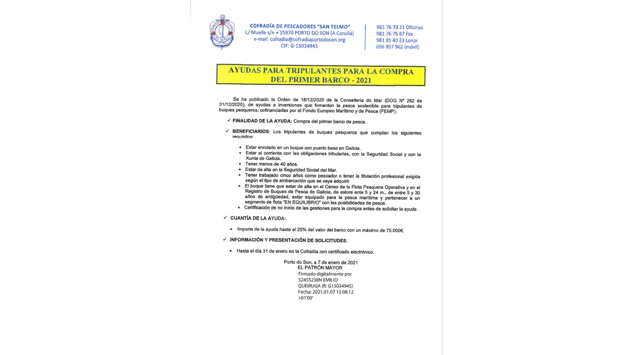 BANDO AXUDAS PARA TRIPULANTES PARA LA COMPRA DEL PRIMER BARCO- 2021
