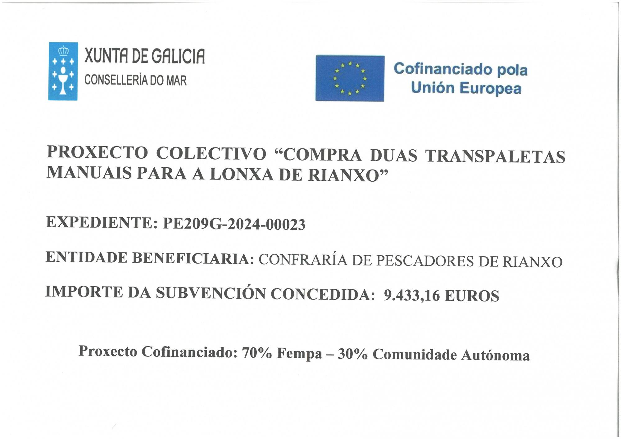 PROXECTO "ADQUISICIÓN DUN CARRO DE VARADA TIPO REMOLQUE PARA A CONFRARÍA DE RIANXO"