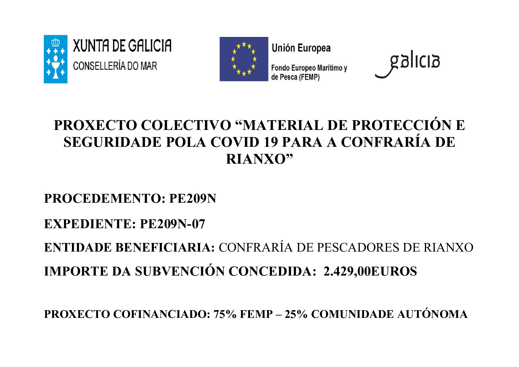 PROXECTO COLECTIVO "MATERIAL DE PROTECCIÓN E SEGURIDADE POLA COVID 19 PARA A CONFRARÍA DE RIANXO"