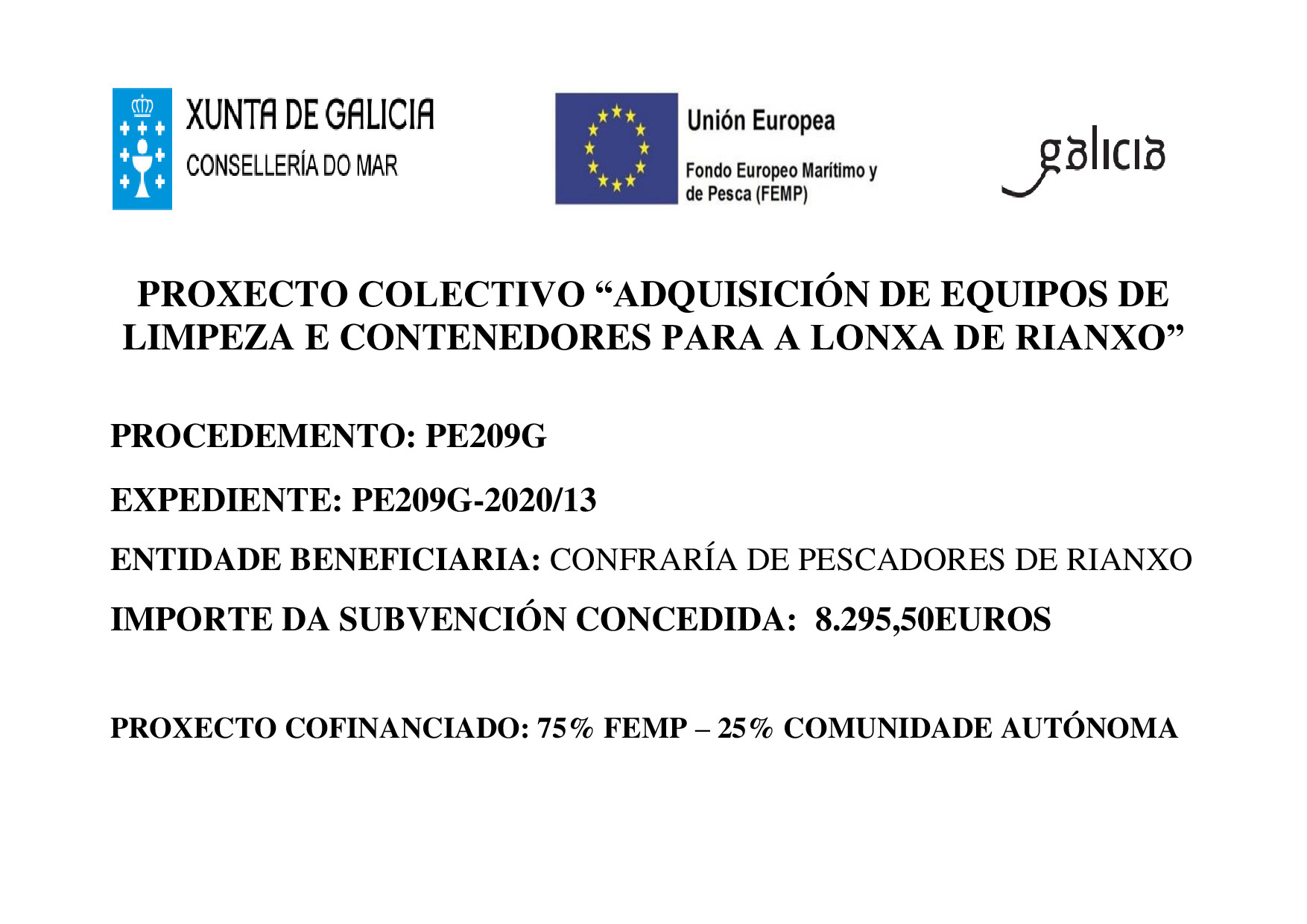 PROXECTO COLECTIVO “ADQUISICIÓN DE EQUIPOS DE LIMPEZA E CONTENEDORES PARA A LONXA DE RIANXO”