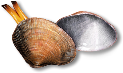 El color de este molusco es normalmente gris pálido o crema, con bandas tenues de una tonalidad más intensa y unas líneas que se dibujan en la concha en paralelo a su borde. Los sifones de la almeja babosa están unidos en toda su longitud y es precisamente esta característica la que nos permite diferenciarla de las otras clases de almejas.