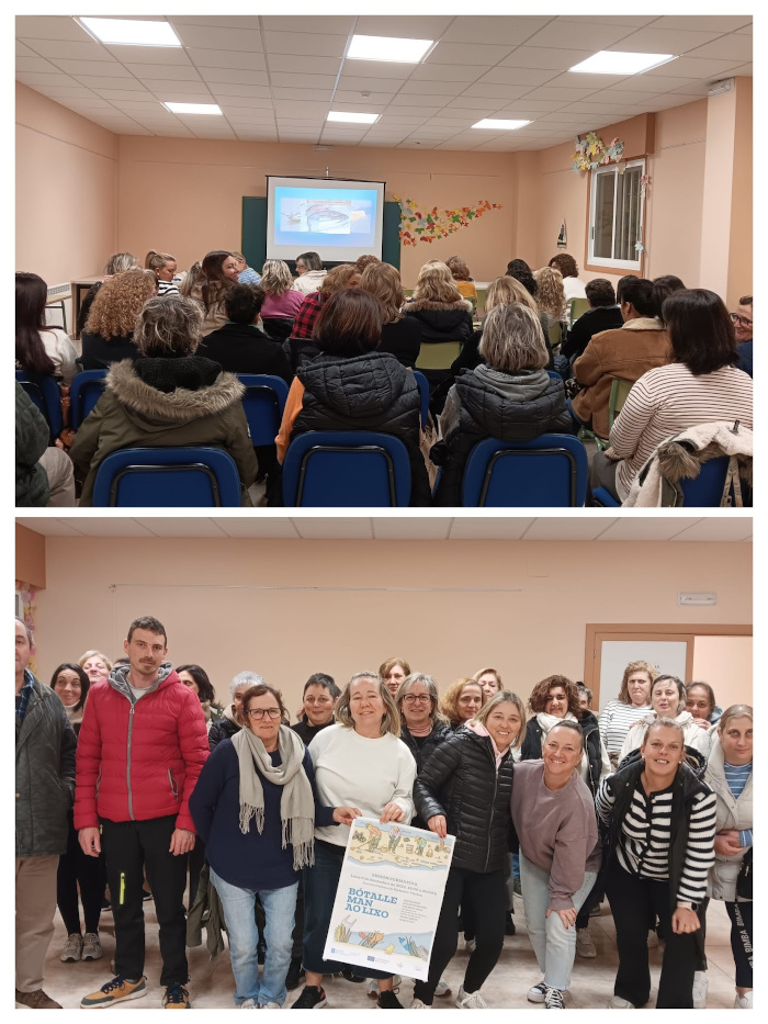 El 11 de agosto, en la casa de la cultura de Riomaior de Vilaboa, se presentaron los resultados de las recogidas de basura marina y algas de arribazón realizadas en el período 2024-2025. Asistieron 38 mariscadoras/es participantes en el proyecto.