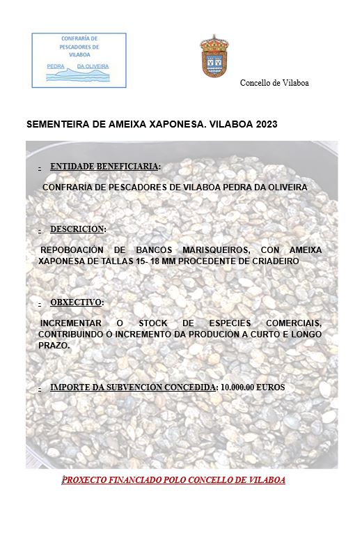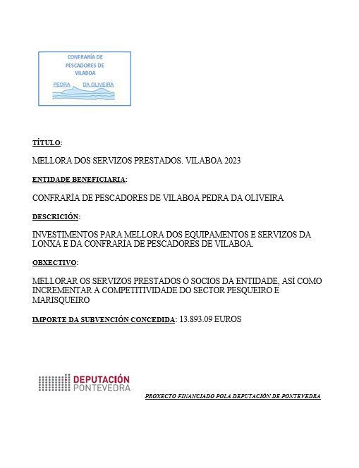 BENEFICIARIO: CONFRARÍA DE PESCADORES DE VILABOA PEDRA DA OLIVEIRA