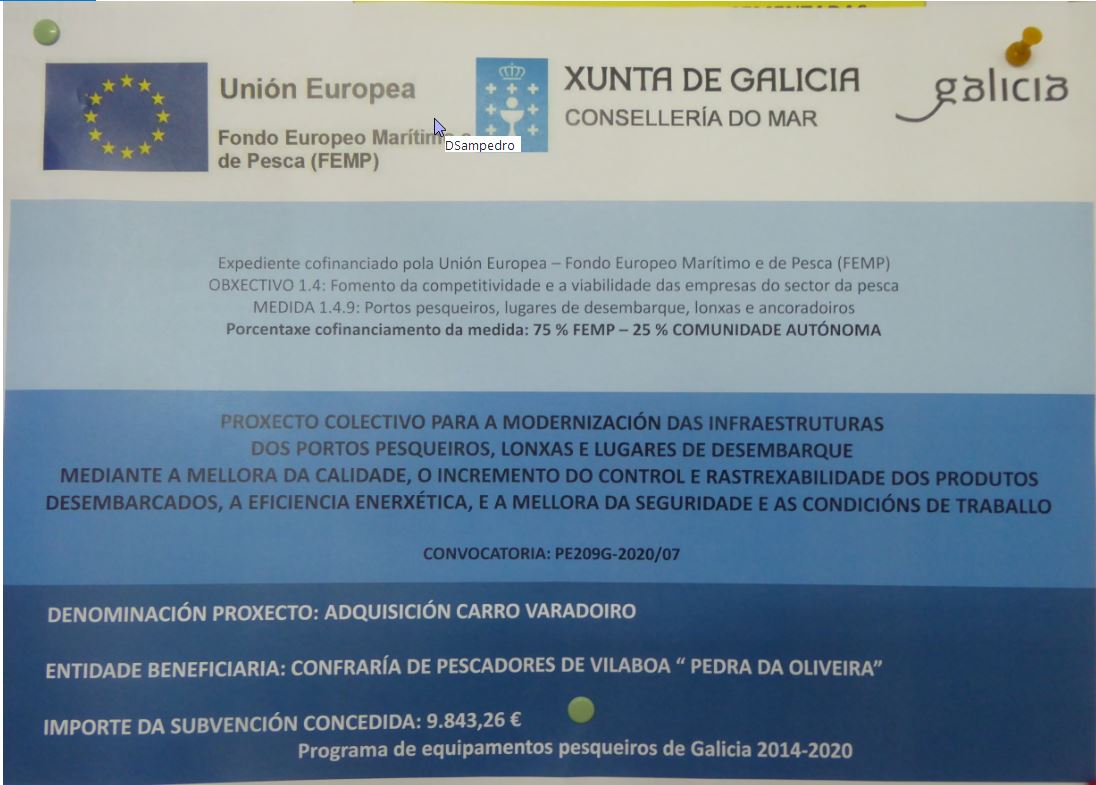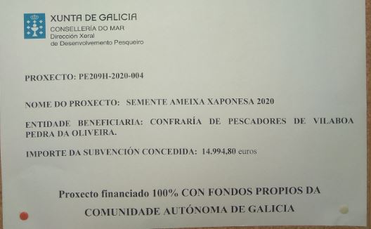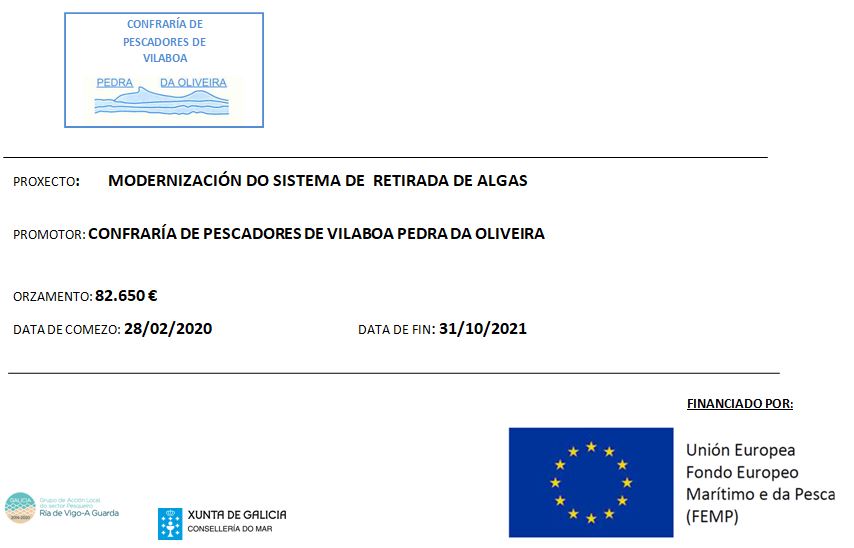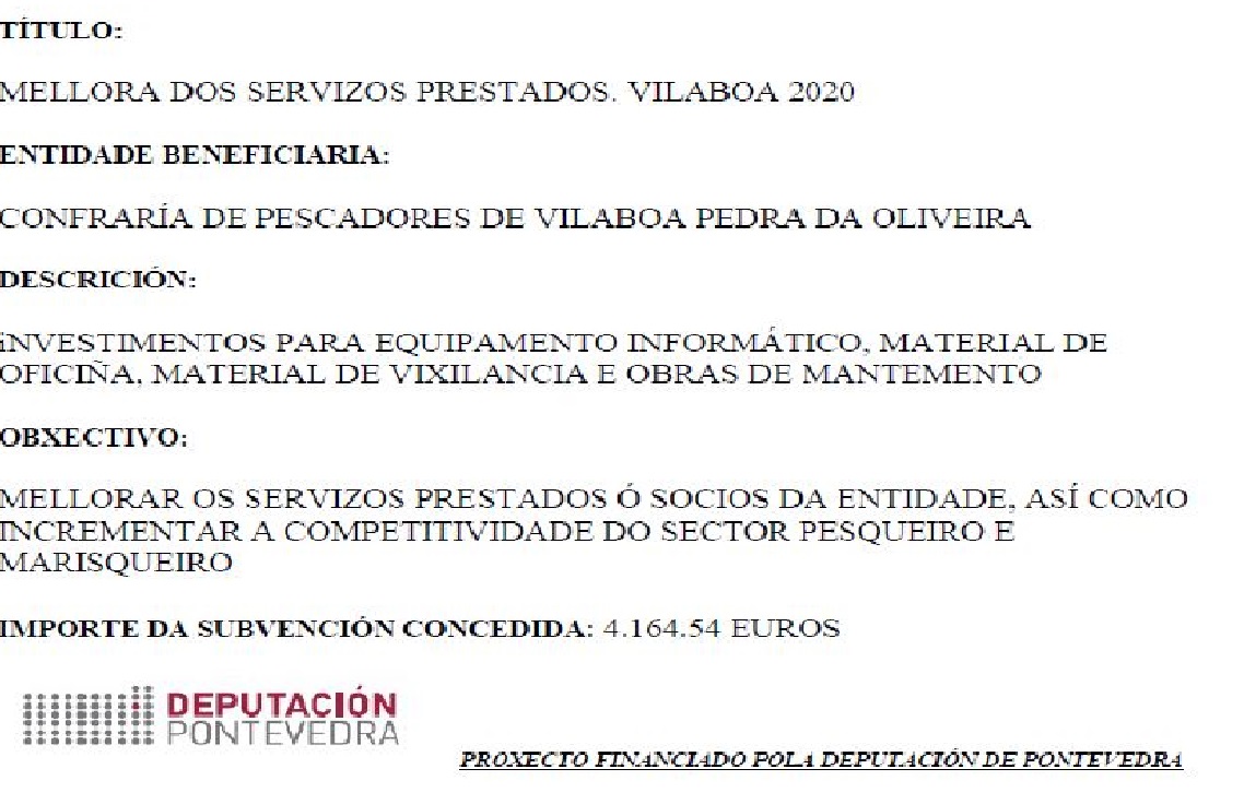 ENTIDADE BENEFICIARIA: CONFRARÍA DE PESCADORES DE VILABOA PEDRA DA OLIVEIRA.