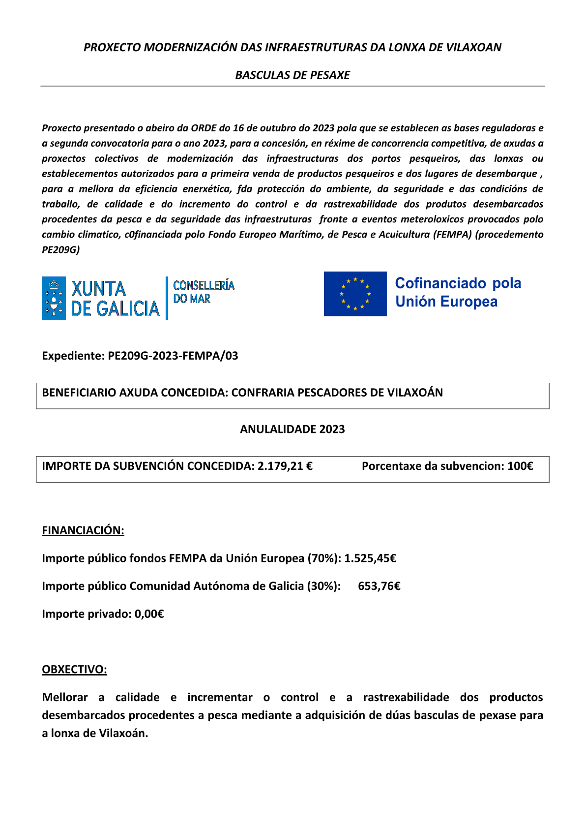 MODERNIZACIÓN INFRAESTRUCTURAS LONXA DE VILAXOÁN - BASCULAS PESAXE